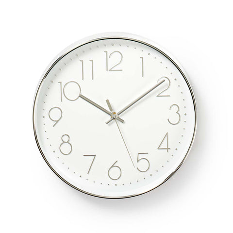 Nedis Clwa015Pc30Sr Ronde Wandklok Diameter 30 Cm Wit & Zilver