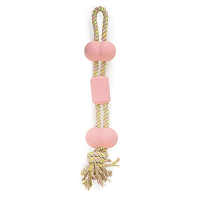 De Rosewood Tough Twist Rubber Met Touw BBQ Smaak 35X7 cm hondenspeelgoed is een stevig hondenspeeltje van gedraaid touw met rubber dat smaakt naar barbecue. Dit hondenspeeltje van Rosewood heeft een heerlijk smaakje en is fantastisch om mee te spelen! Aan dit stevig gedraaide touw zitten drie rubber blokjes. Deze blokjes hebben een overheerlijke barbecue smaak! De pastelkleur heeft een mooie look. Dit speeltje is ideaal voor een leuk spelletje touwtrekken!