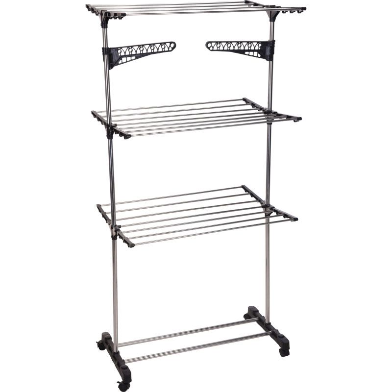 - Het rek heeft aan de zijkanten ook nog extra droogmogelijkheden voor kleding aan hangers