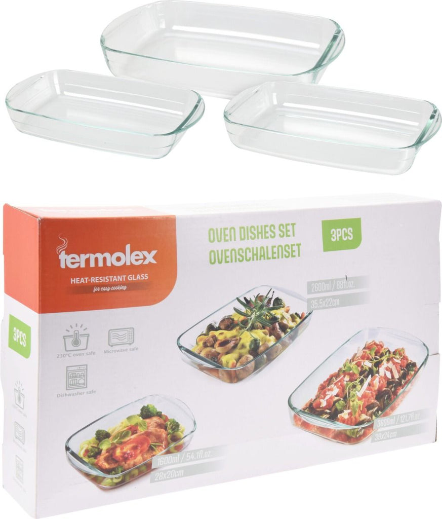Termolex Ovenschalen Set - 3-Delig - 1.6L -2.6L - 3.6L - Glas - Vaatwasserbestendig
