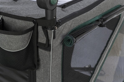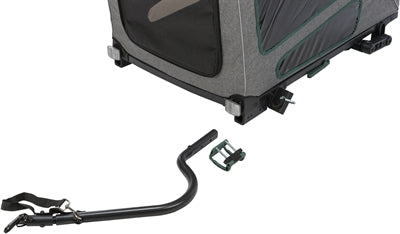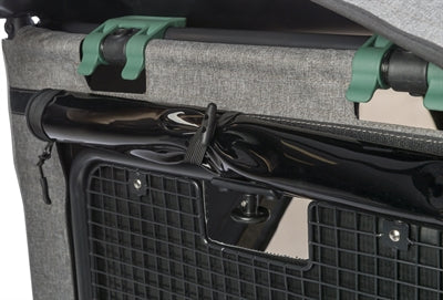 De Trixie Fietskar Grijs/Salie 80X98X103 cm is een hondenkar voor achter de fiets, gemaakt van water afstotend polyester, metaal, rubber en plastic. Neem jouw hond mee op een fietstocht met deze mooie kar! De kar is voorzien van een ophanging voor meer comfort en bevat een kussen met memory foam.