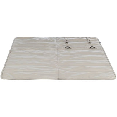 De Trixie Hondendeken Reisdeken Citystyle Kunstleer Lichtgrijs 80 cm is gemaakt van kunstleer dat aanvoelt als nylon, met een duurzame polyurethaan/polyester hoes en een 2 cm dikke polyestervlies vulling. De deken is vervaardigd uit gerecycled materiaal, wat bijdraagt aan een duurzame keuze. Compact op te rollen en eenvoudig vast te maken met drukknopen, is hij voorzien van een afneembaar handvat voor gemakkelijk transport. Dankzij de waterafstotende eigenschappen en het onderhoudsgemak - je hoeft er alleen maar een doekje overheen te halen - is deze reisdeken perfect voor elke avontuurlijke hond en zijn eigenaar.