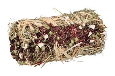 - Made from hay with a delicious flower mix, wrapped in hemp rope