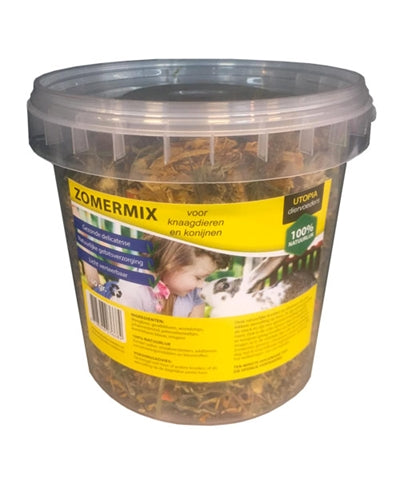 The Utopia Summer Mix 140 grams is a healthy mix of herbs for your rabbits or rodents as an enrichment and addition to the daily feed. This healthy delicacy is easily digestible and consists of various types of dried herbs and flowers. Very natural, because your rabbit or rodent would also eat these in nature! The Summer Mix is low in calories but very tasty and therefore a wonderful change for your rodent or rabbit, and ideal to mix into the feed or hay for some extra flavour.