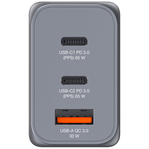 Verbatim GNC-64 GaN Charger 65W 2xUSB-C PD, 1xUSB-A QC 3.0 32201