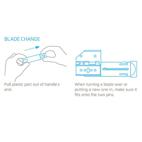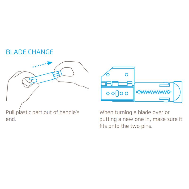 - vervang het mesje zonder gebruik te maken van gereedschap