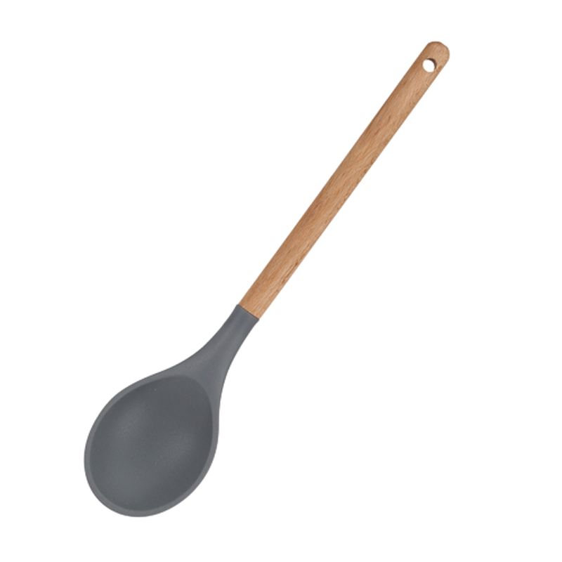 Duurzame keukengerei-set met een houten handvat en siliconen spatel.