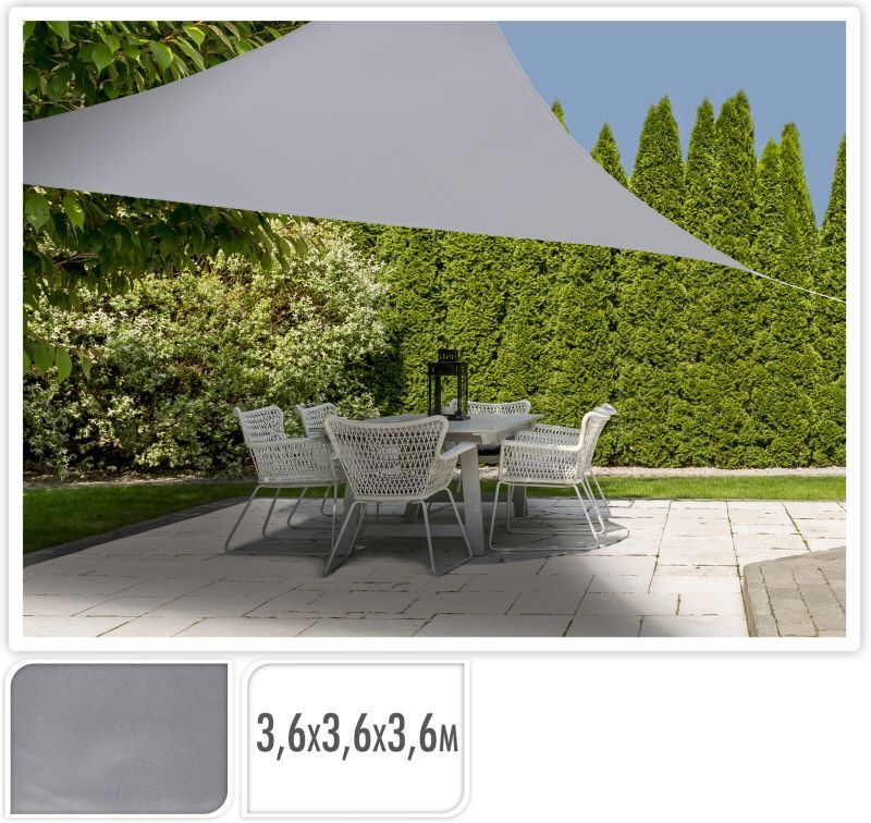 Bescherm jezelf tegen direct zonlicht met dit hoogwaardige zonnedoek van 3.6 x 3.6 x 3.6 meter. Ideaal voor tuin, terras of speeltuin.