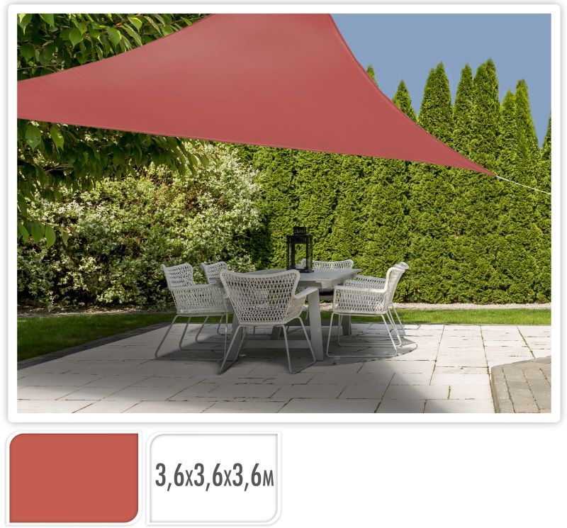 Bescherm jezelf tegen direct zonlicht met dit hoogwaardige zonnedoek van 3.6 x 3.6 x 3.6 meter. Ideaal voor tuin, terras of speeltuin.