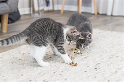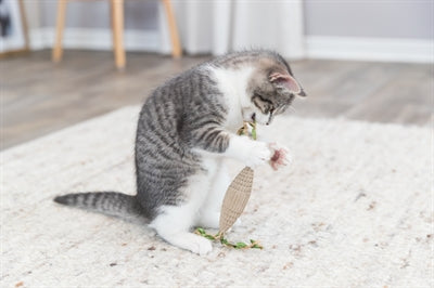 Le Trixie Rugby Ball Carton / Chanvre Beige 24 cm est un jouet pour chat en carton et chanvre, des matériaux attrayants pour gratter, lancer et jouer. Ce jouet est fabriqué à partir de matériaux naturels et présente une forme ovale attrayante avec de longues queues. Idéal pour taper d'avant en arrière et poursuivre.