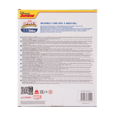 Disney Spidey and Friends zwembad Stoer zwembad van de Spidey en zijn super-vrienden, met een opblaasbare strandbal erbij. Het zwembad is ca 1 meter doorsnede en heeft 3 ringen. Kleur: donkerblauw/rood. Geschikt voor kinderen vanaf 3 jaar.