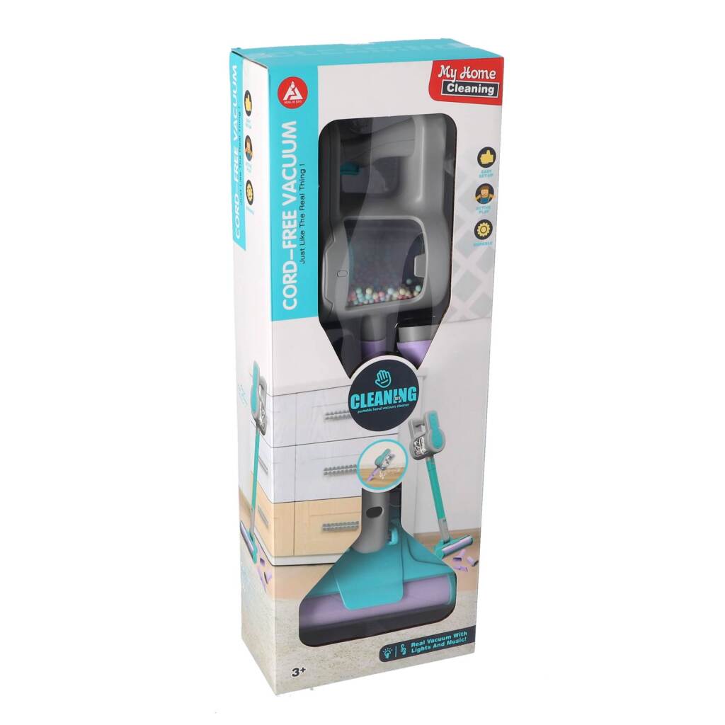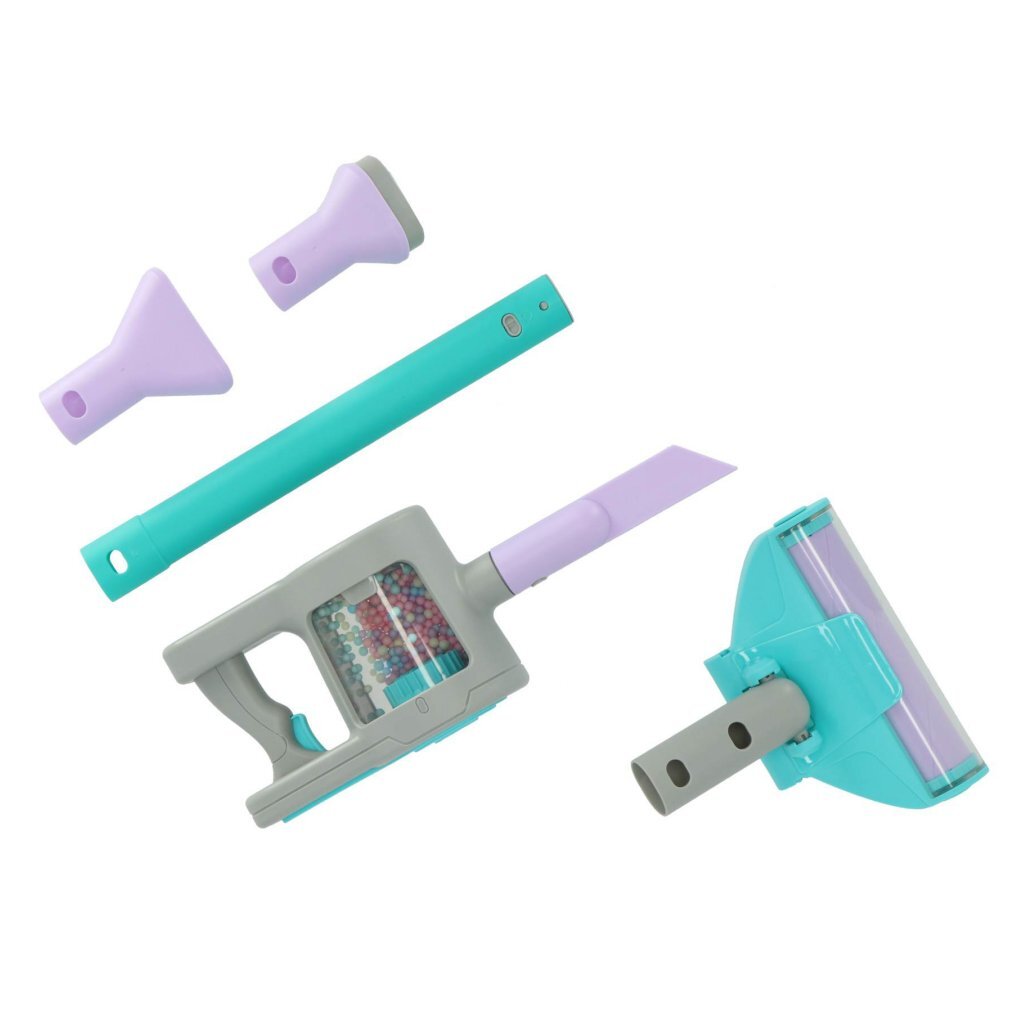 Draadloze stofzuiger met licht- en geluidseffecten. Simuleert echt stofzuigen. Te gebruiken als steelstofzuiger of kruimeldief, met 4 verschillende opzetkoppen voor realistisch spel. Geschikt voor kinderen vanaf 3 jaar.