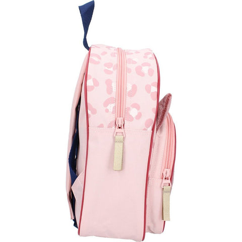 In het ruime hoofdvak passen alle spulletjes voor een Pret-ty dag. Het voorvak is niet alleen functioneel, maar is ook voorzien van schattige oortjes en een stoffen vlak met een lief katten gezicht. Verder is de rugzak versierd met een panter print. De stevige ritssluiting zorgt ervoor dat alle spulletjes veilig en goed opgeborgen zijn. Stijlvolle donker roze accenten geven de rugzak een extra touch. De schouderbanden zijn gewatteerd en verstelbaar. Met de handige lus aan de bovenzijde kan de rugzak gemakkelijk worden opgehangen of aan de hand worden gedragen.