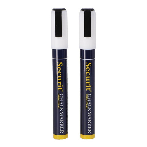 Securit krijtstiften Set van 2 krijtstiften, 2-6 mm punt. Geschikt voor schoolborden, glazen, spiegels, plastic, metaal en keramiek. Gemakkelijk af te wassen. Inktkleur: wit.