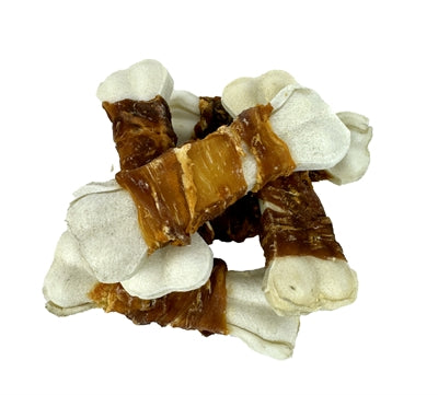 - Omwikkeld met gedroogd eendenvlees