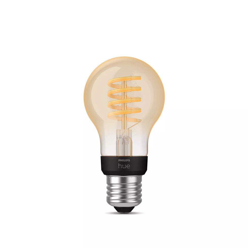 Philips Hue White Ambience E27 Filament A60 7W is een slimme E27-filamentlamp met White Ambience-technologie. Het A60-formaat combineert retro vibes met moderne functionaliteit, waardoor deze lamp perfect past in elke ruimte—van woonkamer tot slaapkamer en kantoor. White Ambience met aanpasbare kleurtemperatuur: kies van warm zacht wit tot koel helder wit en pas de sfeer aan op basis van tijdstip, activiteit of stemming. Filament-ontwerp: open filamenten voor een sfeervolle en designgerichte uitstraling in elke ruimte. Dimbaar en energiezuinig: 7W met vergelijkbare lichtopbrengst als traditionele lampen, voor lagere energiekosten en langere levensduur. Volledig dimbaar voor sfeervol licht. Slimme bediening: bedien via de Philips Hue-app, stel scènes in en automatiseringen in voor dagelijkse routines en speciale momenten. Compatibiliteit en spraakbediening: werkt binnen het Philips Hue-systeem en ondersteunt spraakbediening via Alexa, Google Assistant en Apple HomeKit (met Hue Bridge). Eenvoudige installatie: standaard E27-fitting voor snelle vervanging en probleemloze integratie in bestaande armaturen. Upgrade jouw interieur met een Heldere, flexibele en stijlvolle verlichting die eenvoudig te integreren is in jouw slimme huis. Kies voor de Philips Hue White Ambience Filament A60 7W en geniet direct van controle, automatisering en sfeervolle verlichting.