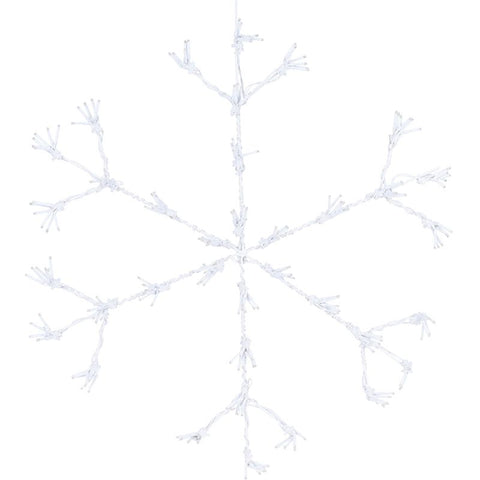 Deze verlichte sneeuwvlok is geschikt om zowel binnen als buiten op te hangen. Het kerstfiguur heeft een diameter van maar liefst 60 cm, waardoor het een echte blikvanger is. De verlichting heeft in totaal 216 warm witte led's: 36 clusters met 6 lampjes, hierdoor krijg je het speelse "firework effect".
